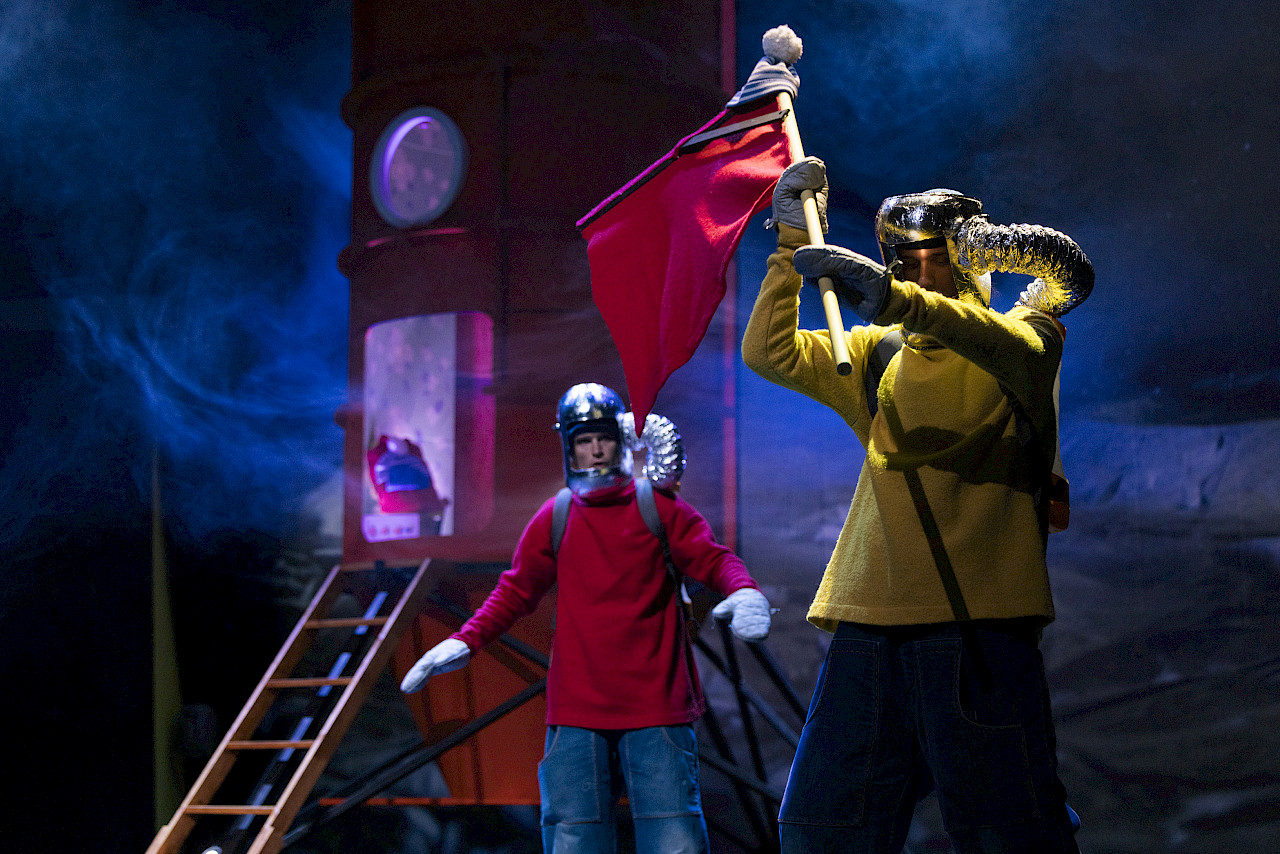 Als Buurman & Buurman na een dag hard werken ‘s avonds nog even in de tuin zitten, zien ze dat het volle maan is. Wat zou het toch bijzonder zijn om hun huisje eens vanaf te maan te kunnen bekijken, fantaseren ze. ‘Zullen we niet gewoon een raket bouwen en het proberen?’ zegt Buur. Die nacht kunnen ze bijna niet slapen van het idee om naar de maan te gaan. De volgende dag beginnen ze direct. Er moet heel wat gebouwd worden: een raket, een lanceerbasis en natuurlijk ruimtepakken. Als dat maar goed gaat… Hun lijfspreuk ‘A JE TO!’ (betekent: en dat is het) roept straks de hele zaal luidkeels mee. De voorstelling is geschikt voor kinderen vanaf 4 jaar.