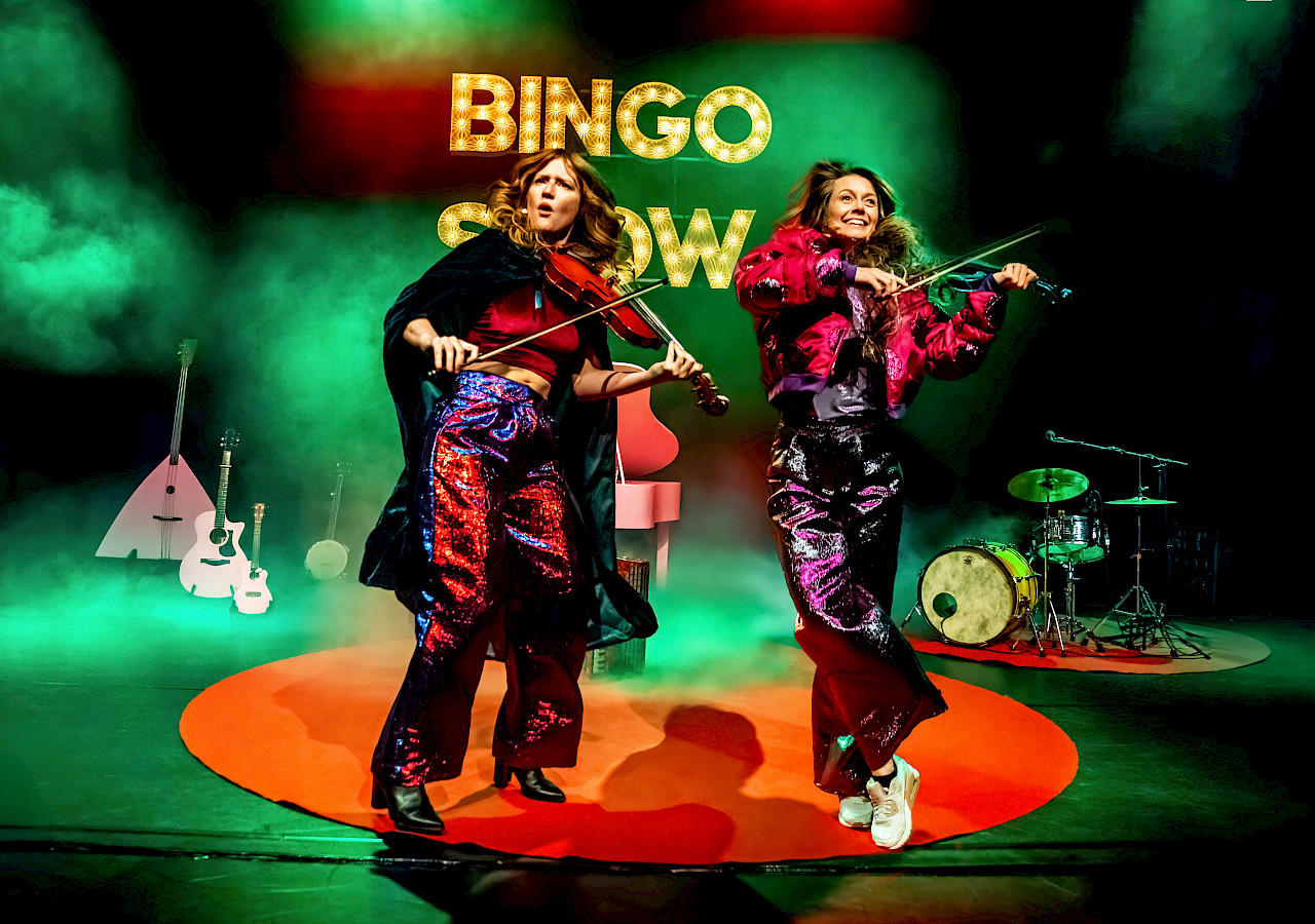 Dit duo blinkt uit in de combinatie van klassieke én hypermoderne muziek. Hun voorstellingen zijn humoristisch én ontroerend. Virtuoos én verrukkelijk plat. Samen spelen ze meer dan twintig instrumenten, waaronder de banjo, viool, piano, accordeon, balalaika, zingende zaag, autoharp en neusfluit. De Bingo Show is de zesde theaterproductie van Maartje en Kine.